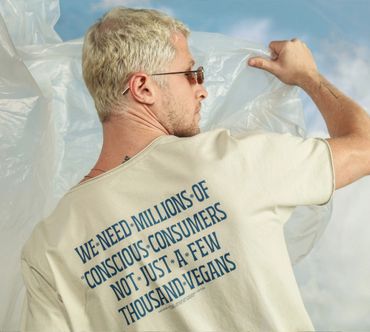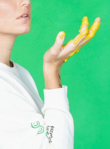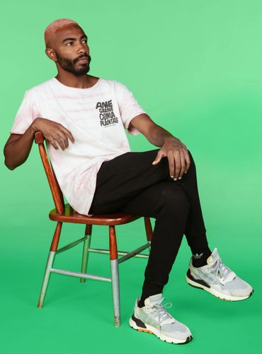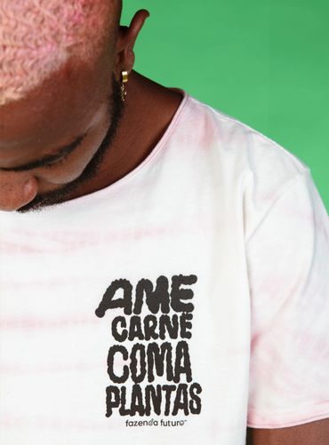 In 2020 we were invited to collab with Future Farm, as one of the capsules of Lab77's Futuro collection. The Brazilian Foodtech specializing in plant-based meat teamed up with us to create a sustainable collection, using the arts of renowned Brazilian artist, Yomar Augusto and the unmistakable visual language of FF. Among all the pieces we created together, we were especially proud of the tie-dye t-shirt made with natural dyeing. My role in this project was to conceptualize, develop and produce a collection and the pieces for the publicity campaign for this collab. The partnership was a great success with the activation of the FF brand among the Lab77 audience and a great increase in awareness for our brand, including a report about the collection being highlighted in Vogue Brasil on that occasion.