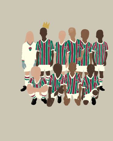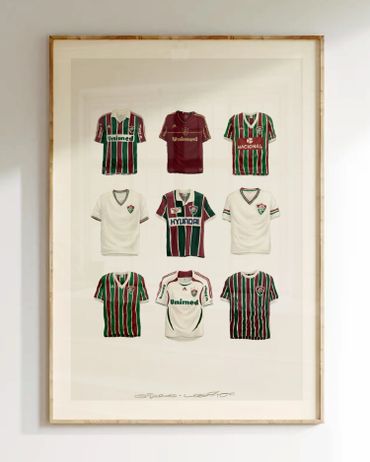I have always been passionate about football shirts, especially the Fluminense shirt, of which I am a collector with a collection of over 50 historical pieces. The unusual combination of colors and the vertical arrangement of stripes makes this shirt unique. It's a challenge to create a product with these configurations that also incorporates elements of modern football such as sponsorships and commemorative badges. When all the details are harmoniously aligned, the shirt becomes unparalleled. Over the years, I have conducted several case studies on Fluminense shirts. In addition to the shirts, I have also developed a series of illustrations with the tricolor shirt as the main element.