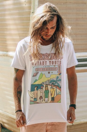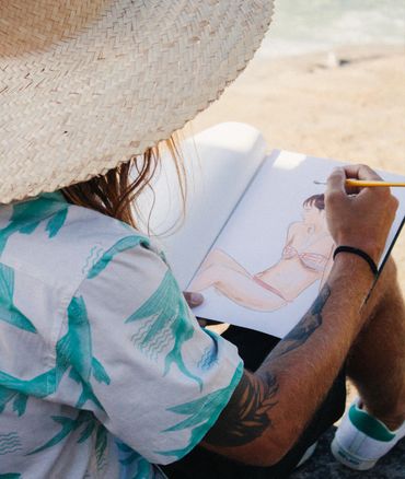 Lab77's summer 2018 collection was inspired by the silence to develop its narrative. The idea was to escape the city and find a quiet corner to relax and enjoy the best days. The photos were taken at the Camping Club in Rio de Janeiro and at Praia do Secreto, which was becoming a hotspot at the time. I was responsible for designing the pieces in the collection, the prints, and directing the campaign.